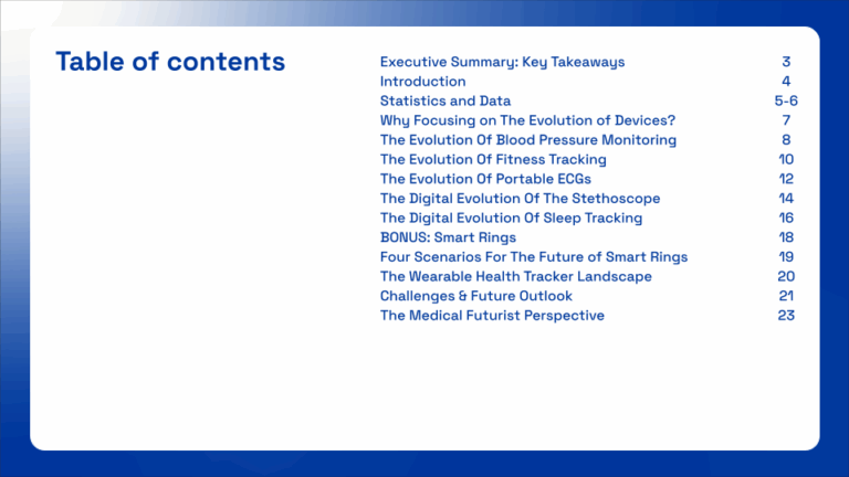 ด้วยการวิเคราะห์ว่าอุปกรณ์เหล่านี้พัฒนาไปอย่างไร ตั้งแต่ต้นแบบในยุคแรกๆ ไปจนถึงเครื่องมือทางการแพทย์ที่ขับเคลื่อนด้วย AI ในปัจจุบัน เราสามารถเข้าใจได้ว่าความก้าวหน้าครั้งถัดไปจะเกิดขึ้นที่ใด นี่คือเหตุผลว่าทำไมวิวัฒนาการของอุปกรณ์สุขภาพดิจิทัลจึงเป็นจุดเริ่มต้นที่สมบูรณ์แบบสำหรับซีรีส์ e-book ใหม่นี้
